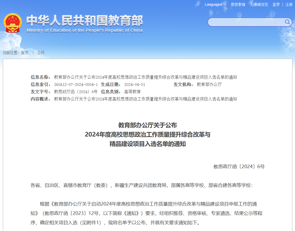 近日,教育部公布《2024年度高校思想政治工作质量提升综合改革与精品建设项目入选名单的通知》(教思政厅函〔2024〕6号),经组织推荐、资格审核、专家遴选、网络公示等环节,我校王强主持建设的“润心工匠工作室”成功入选国家级辅导员名师工作室,这是我校辅导员队伍建设及学生工作又一标志性成果。此次系教育部首次评选全国高校辅导员名师工作室(全国80项,河南省3项)。