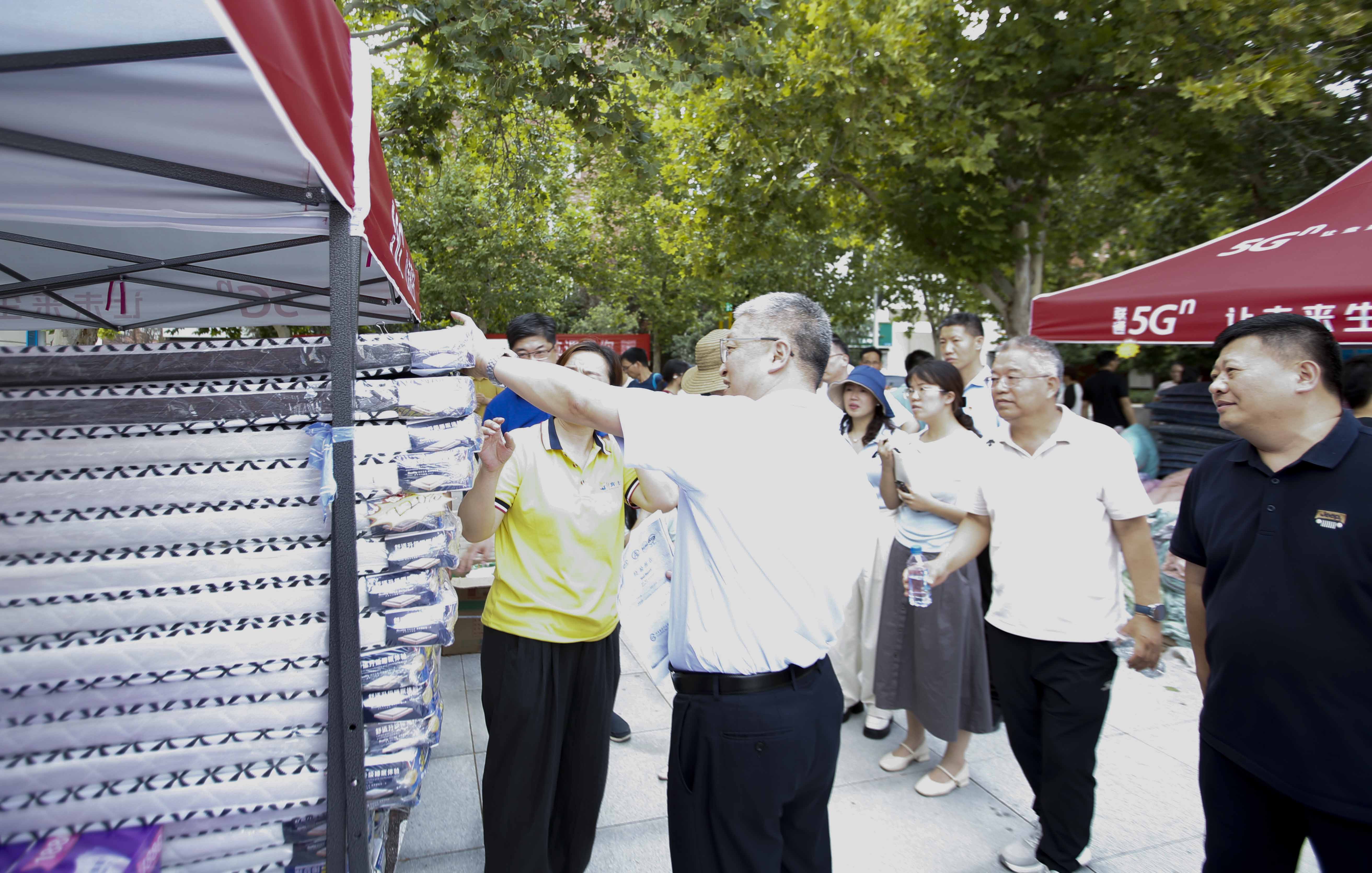 学校商业街设置了入学用品专区,校领导走访现场并听取了工作人员关于物资采购、选品、商品服务售价及质量等情况的汇报。刘代军要求,商业街运营要严守质量标准,科学有效管理,确保价格公道合理、环境安全卫生,着力为学生提供优质服务。