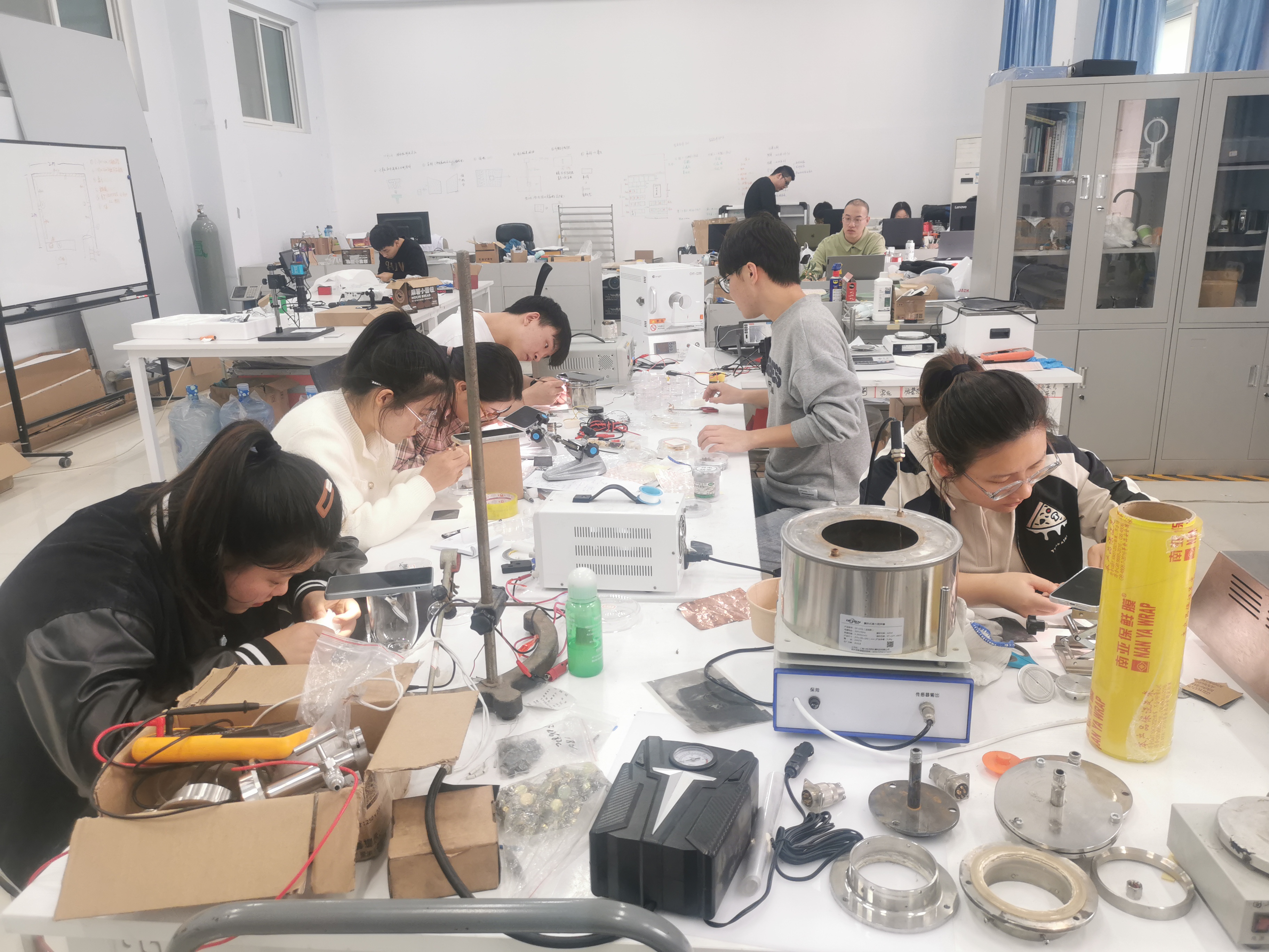 暑假里的郑州,气温高达40℃,热浪袭人。团队成员克服高温天气,在实验室里做着1000℃的灯丝生长实验。最终,他们实现了准宏观碳纤维灯丝材料的可控制备,进而完成了微束电子枪的研制与测试。