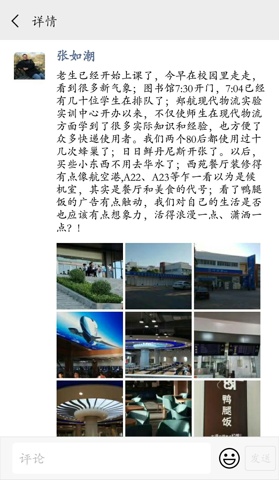 如今,张如潮把家搬到了东校区。他说在东校区的西侧有一条“运粮河”,现在叫东风渠,那里经常聚集有很多白鹭,多时能够有100只左右。“看到白鹭在龙子湖安家很开心。今日的郑航来之不易,也希望大家都能把航院当成自己的家,爱家、护家、共同建设这个家,让学生在这里安心读书,让教师在这里安心教学,让我们在这里安心生活!”张如潮说。