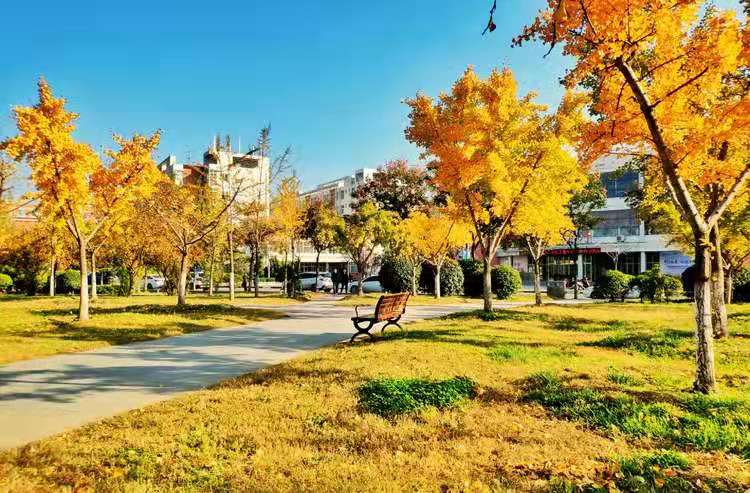 “春天,我坐在沁湖旁的长椅上,看路边垂柳倒映湖中;秋天,我走在银杏大道上,阳光照耀下的那片金黄把校园装扮得格外靓丽。美丽校园,将陪伴我走过四年大学生涯,想想都是开心的。”蓝天书院2020级学生王瀚说。