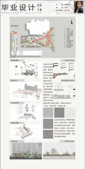 作品简介:本设计将学校校徽文化与绿化的形式相结合,做到绿色补偿,整体增添了校园植物景观的丰富性和校园文化氛围。