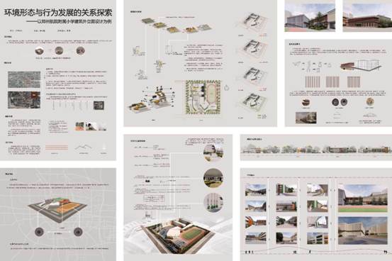 作品简介:本项目是郑州航院老校区教学楼周边景观及建筑外立面改造。将空间进行立体化的使用,加设适合人们滞留、休憩、娱乐和交流的场所。