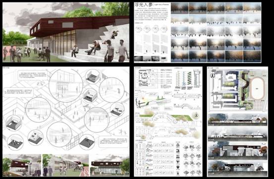 作品简介:中国传统书院内在精神和外在形式在当代校园建设过程中因素呈现,试图在传统和当代找到一个平衡点,实现对传统的传承和现代的新型设计形式。