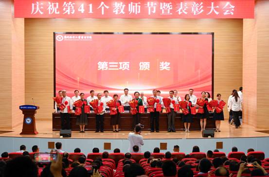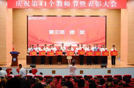 我校举行庆祝第41个教师节暨表彰大会 时间:2025年09月12日 作者:新闻中心 编辑:新闻中心 点击: 9月10日,我校举行庆祝第41个教师节暨表彰大会,传达学习习近平总书记给全国特岗教师代表重要回信精神,传达学习河南省庆祝第41个教师节表彰大会精神,总结成绩、表彰先进,大力营造尊师重教的浓厚氛围,激励广大教职员工牢记为党育人、为国育才初心使命,弘扬教育家精神,积极投身学校高质量发展新征程。全体校领导出席会议。校党委书记王全良作总结讲话。会议由校长邓中亮主持。 2025年09月12日 图片新闻 上一条:我校邀请航空航天专家吴杰为新生讲授“开学第一课” 下一条:我校召开航空港校区建设项目廉政警示教育工作会 【关闭】