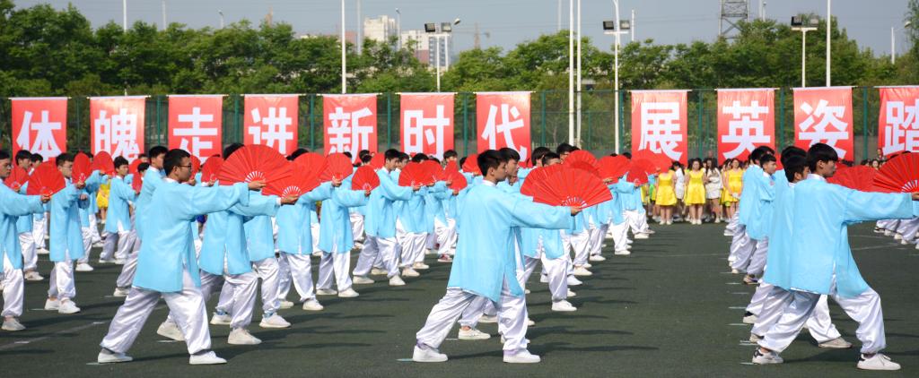 全校各学院千名大学生参与了开幕式的重头戏——大型团体操 《扬青春风帆 舞郑航梦想》的表演。表演分为《悦动青春 春满校园》、《踏歌逐梦 梦圆郑航》、《武国萃魂,舞中华韵》三个篇章。