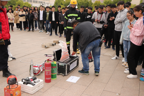 消防宣讲会围绕“学校消防安全四个能力建议”、“如何防止火灾发生”、“火场逃生技巧”、“灭火器的使用方法”四个方面展开。宣讲结合其他高校宿舍失火案例,警示师生随着夏季的到来,学校用电量加大,火灾的各类诱发因素增多,易发生火灾事故,更应提高警惕;并通过现场模拟火灾发生,让学生体验使用防毒面罩、干粉灭火器模型,并详细讲解灭火器的种类、适用类型、使用方法和发生火灾时如何正确使用内外部报警电话,加深在场学生的应急防护意识。