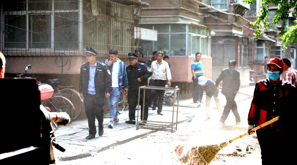 5月9日、10日,后勤管理处联合保卫处、离退处、工会等部门和福华街办事处、福华派出所、二七区执法大队等采取统一行动,对航海路校区未在规定时间内整改的违规建筑、违规物品等进行集中清理。
