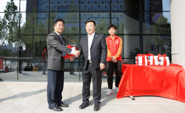 刘柱代表中航出版传媒有限公司及在中航传媒工作的郑航校友为我校70周年校庆捐赠价值15万元的图书。