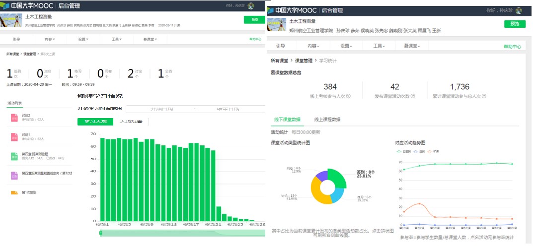 《土木工程测量》是省级精品在线课程之一,孙庆珍组织《土木工程测量》教学课程团队主要从在线教学理念、在线教学方法、在线教学手段等方面对“互联网+”模式下的教与学问题进行研讨和创新,“我们通过‘三个坚持’打造‘金课’,确保教学效果与教学质量得到提升。”