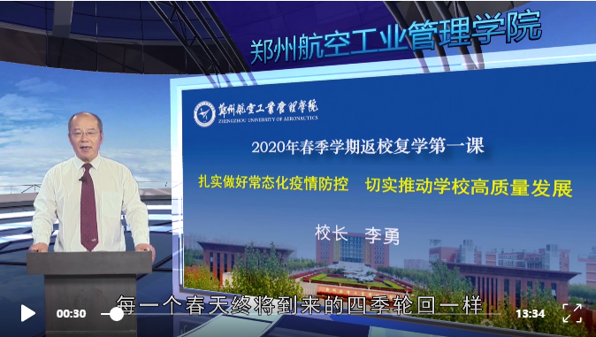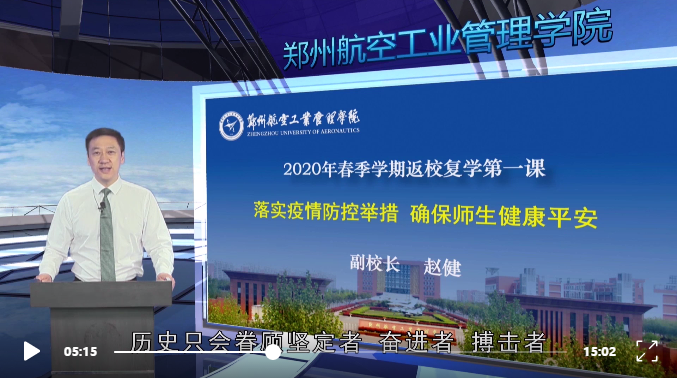 根据河南省教育厅统一部署,5月19日,我校从学校、学院、班级三个层面,通过专家讲解、领导宣讲、专业指导和特色教育活动,以网络平台播放形式,组织全体返校学生同上“返校复学第一课”。