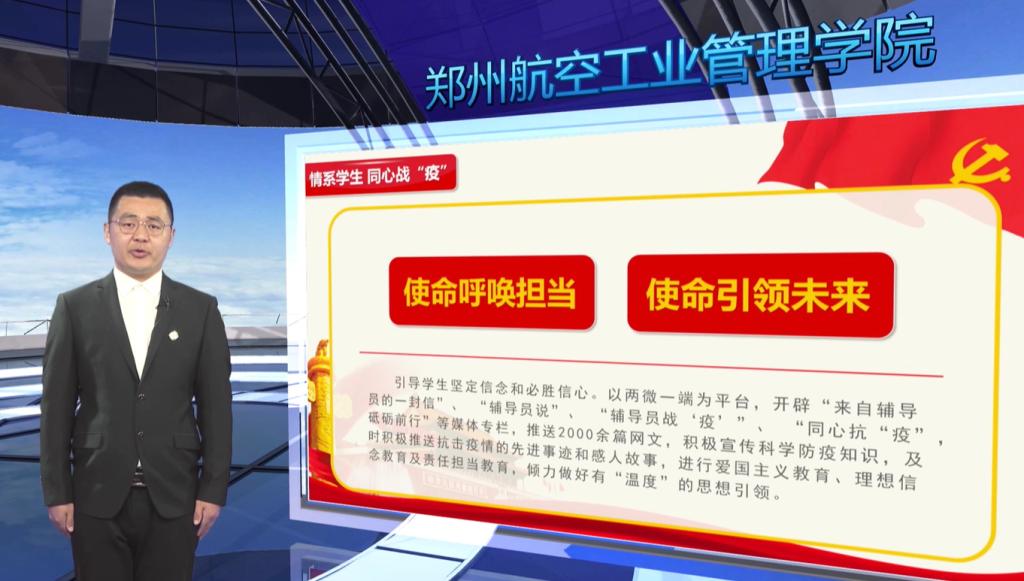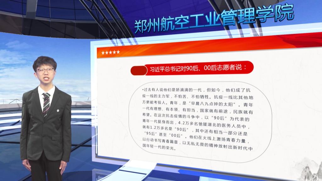 11月5日,我校举行“知中有行 一力担当:郑州航院抗疫先进事迹宣讲报告会”。来自学生工作一线的辅导员、职能部门的工作人员,以及在校大学生等6位抗疫先进个人,先后讲述他们抗疫的亲身经历与真切感受。全校师生通过网络平台视频观看的方式收看宣讲报告会。