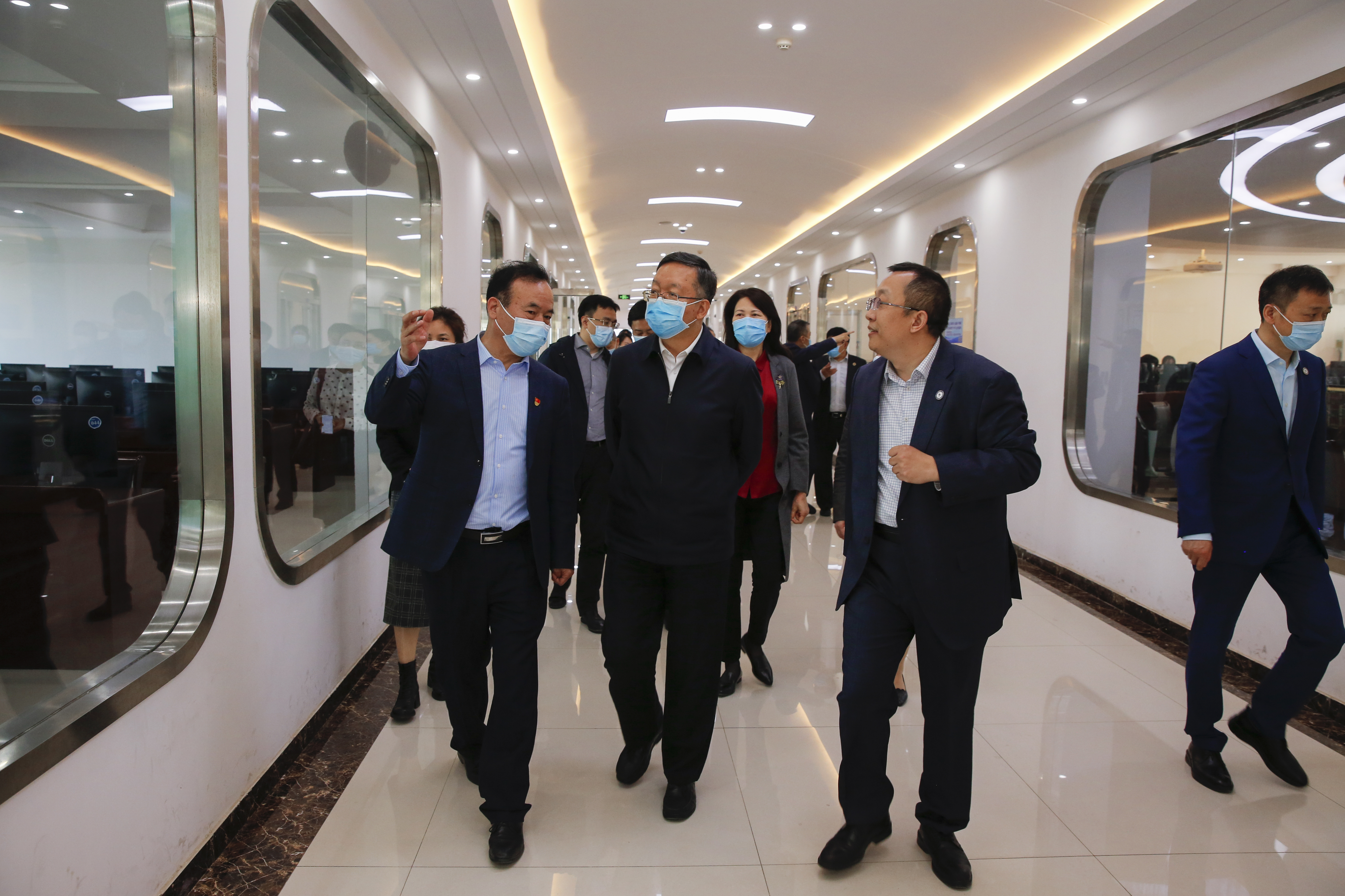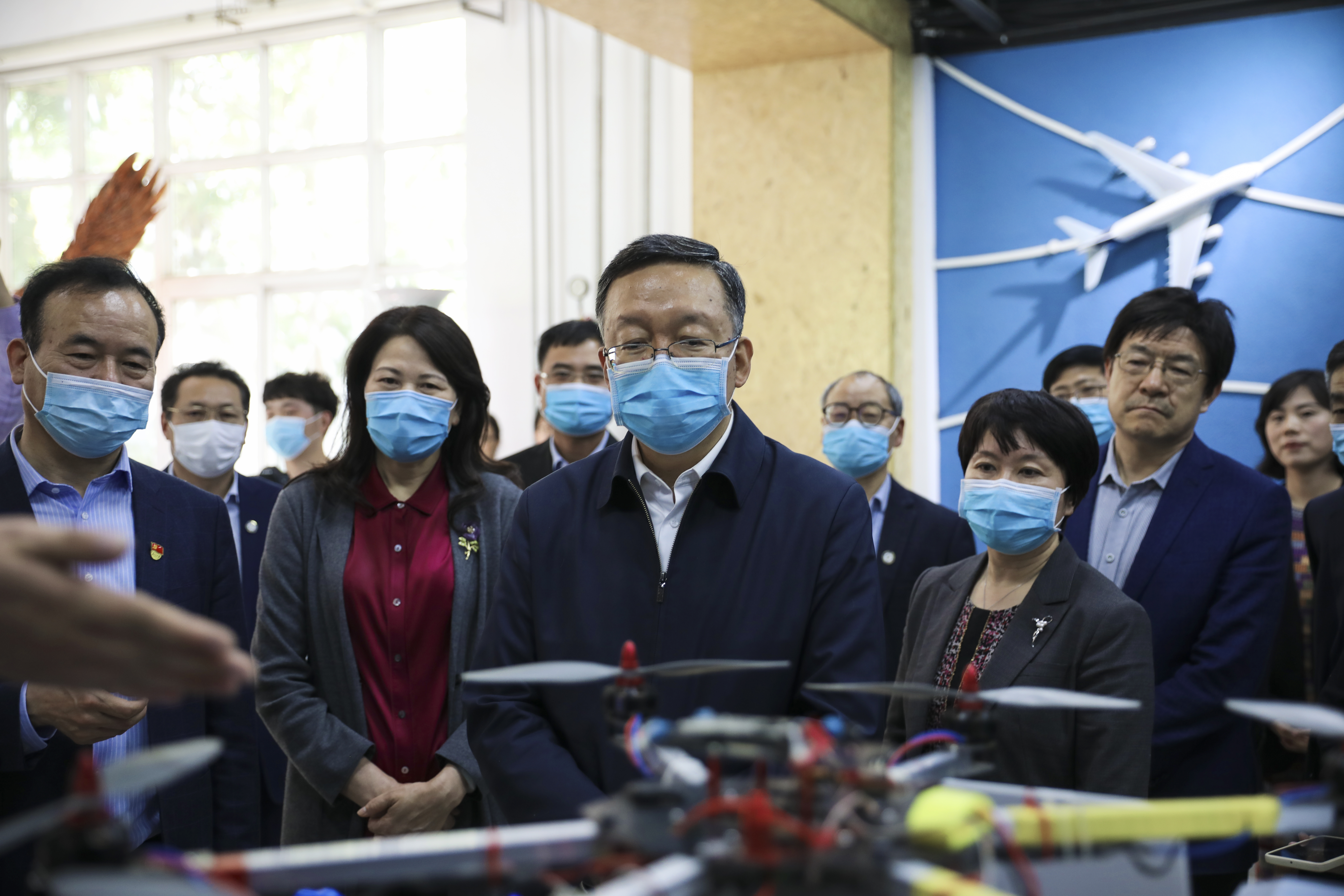 田学军副部长一行先后来到我校航空文化馆、虚拟仿真实验中心、“郑州法语联盟”、众创空间,实地调研中外合作办学规范管理、落实意识形态工作责任制和贯彻落实《深化新时代教育评价改革总体方案》情况。