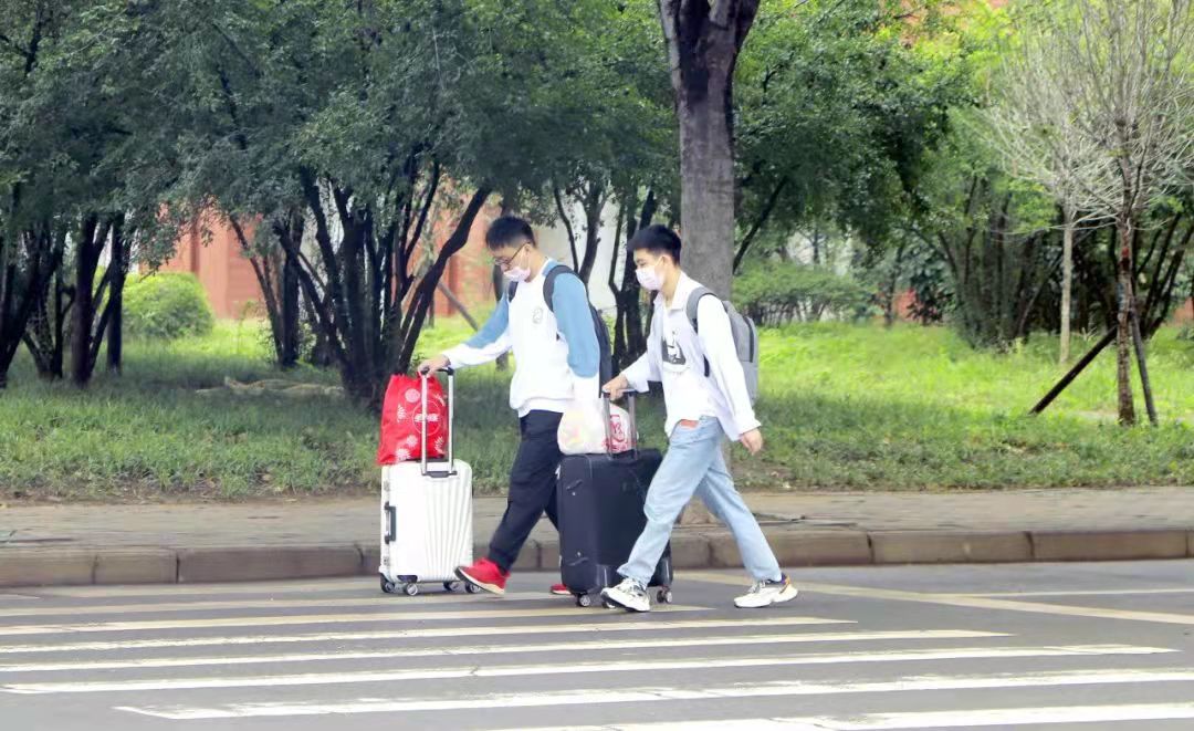 10月9日、10日,龙子湖校区、大学路校区校门入口处道路两旁的条幅格外醒目,我校迎来2021年秋季学期首批返校学生。
