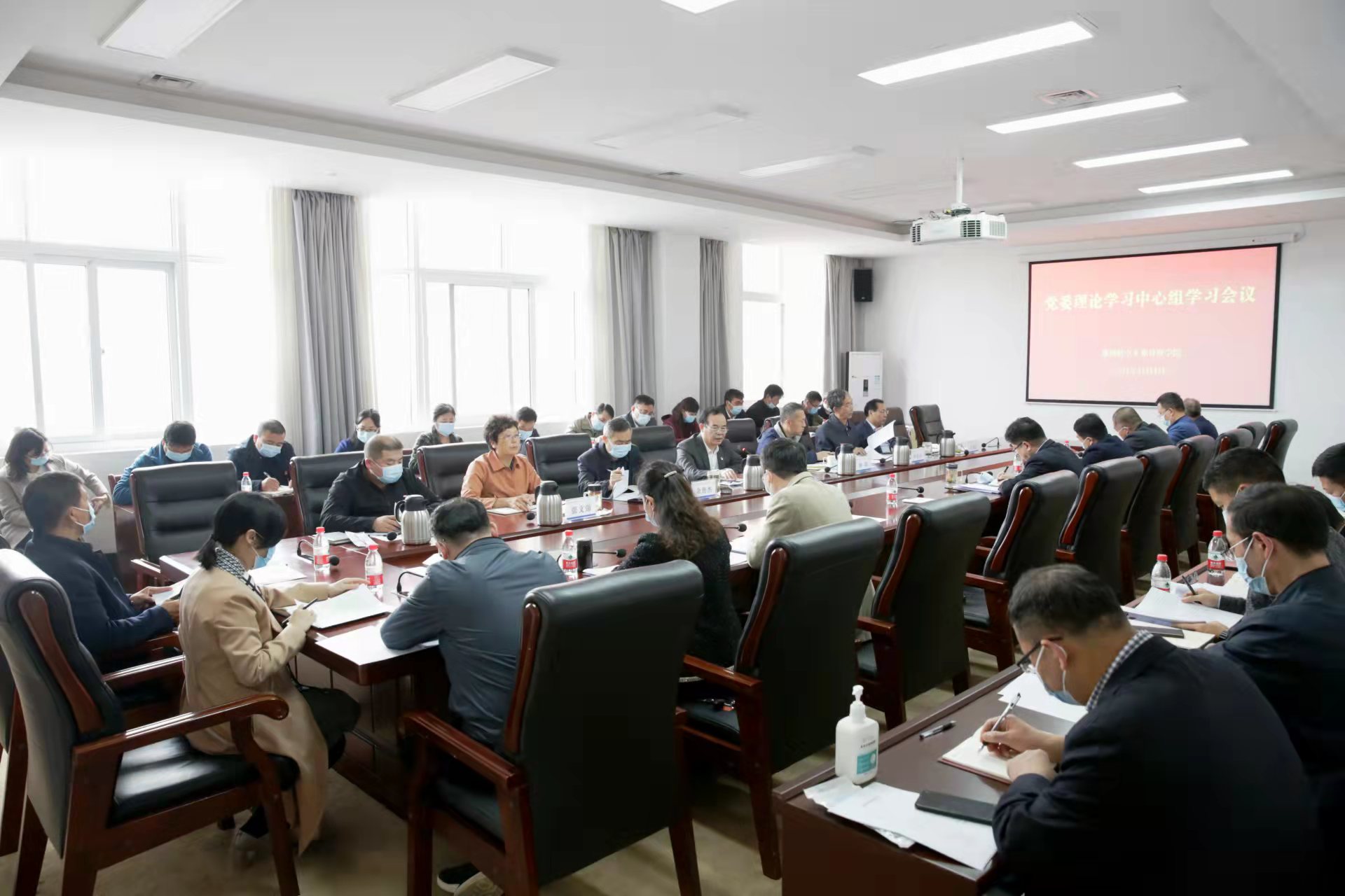 11月1日,校党委书记付强主持召开党委中心组专题学习会,传达学习贯彻中国共产党河南省第十一次代表大会(以下简称省第十一次党代会)精神,深入学习贯彻习近平总书记在中央人才会议上的重要讲话精神,安排部署全校学习宣传贯彻工作。全体在校校领导,不是校领导班子成员的党委委员,各基层党委、党总支、直属党支部书记,以及校党委各部门、校行政主要业务部门负责人参加学习。