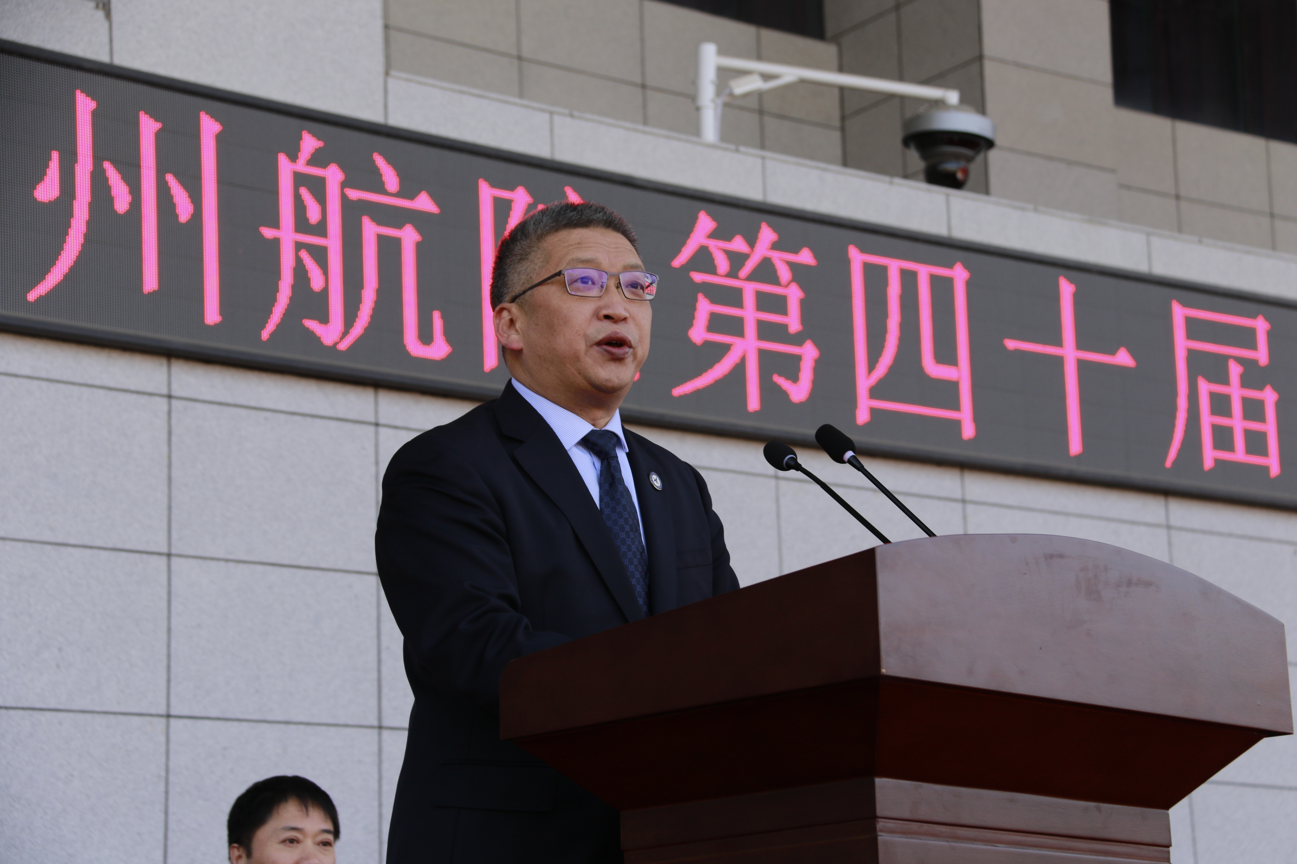 校党委书记付强宣布郑州航院第四十届春季运动会开幕。