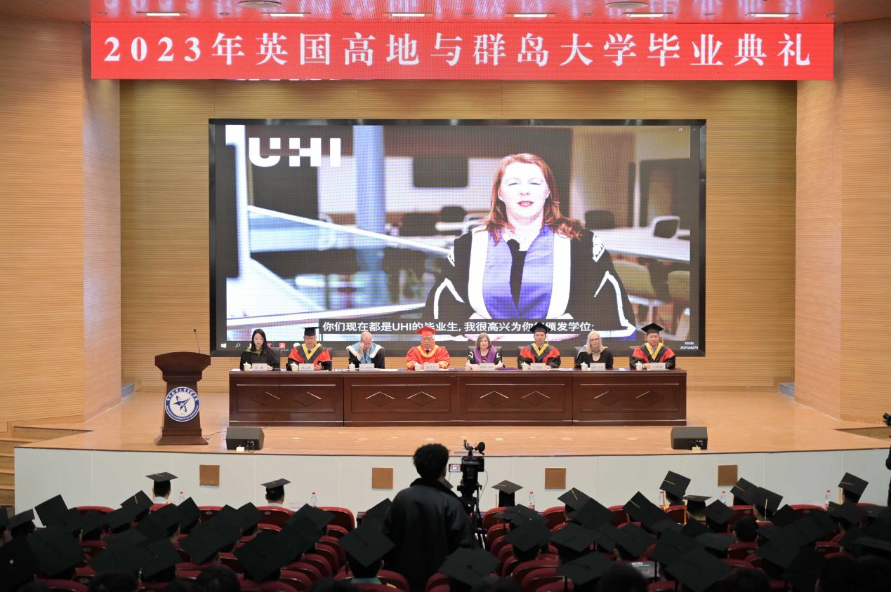 会见结束后,韦罗妮卡·林奇一行在图书馆第一报告厅与我校共同举办2023年英国高地与群岛大学毕业典礼。本次典礼是我校与英国高地与群岛大学合作办学以来的首届毕业典礼。