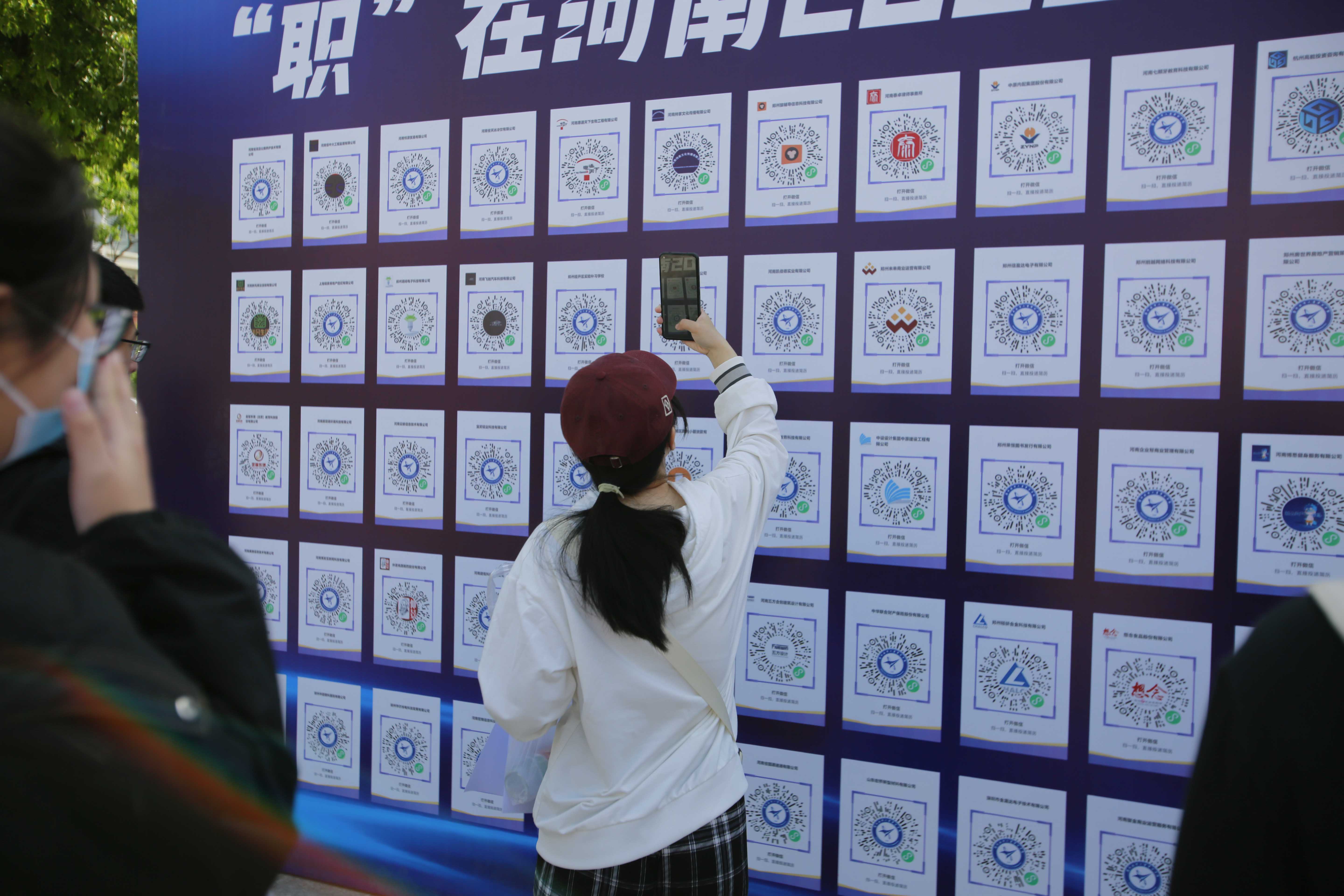 此次双选会采取“线下和线上结合、就业与实习结合”的方式开展。会场设置参会企业二维码墙,方便学生“码”上就业,学生扫描二维码可查看企业信息、岗位信息,在线投递简历。此外,招聘会现场还设置参军入伍政策咨询及郑州人才政策咨询专区。