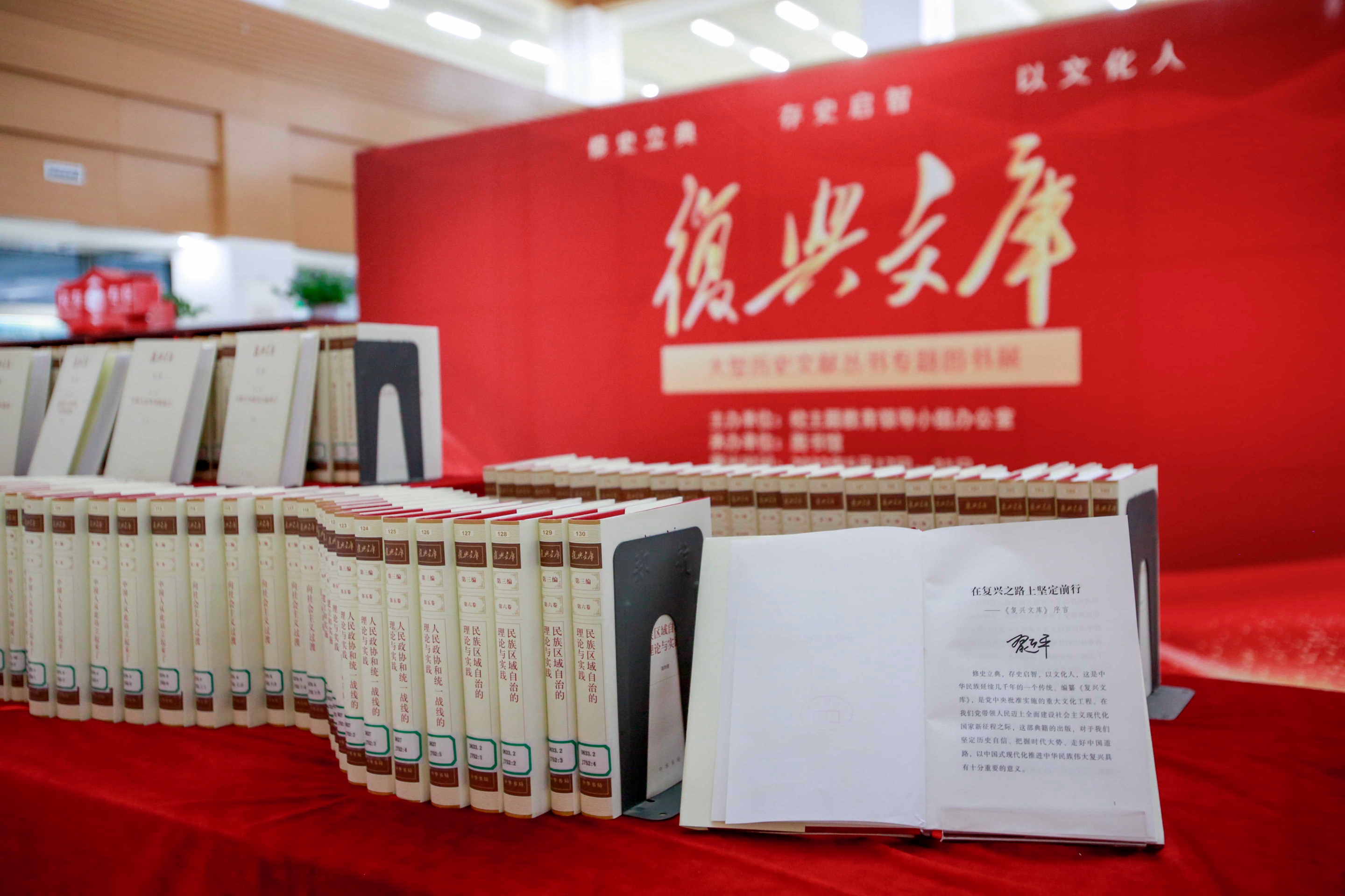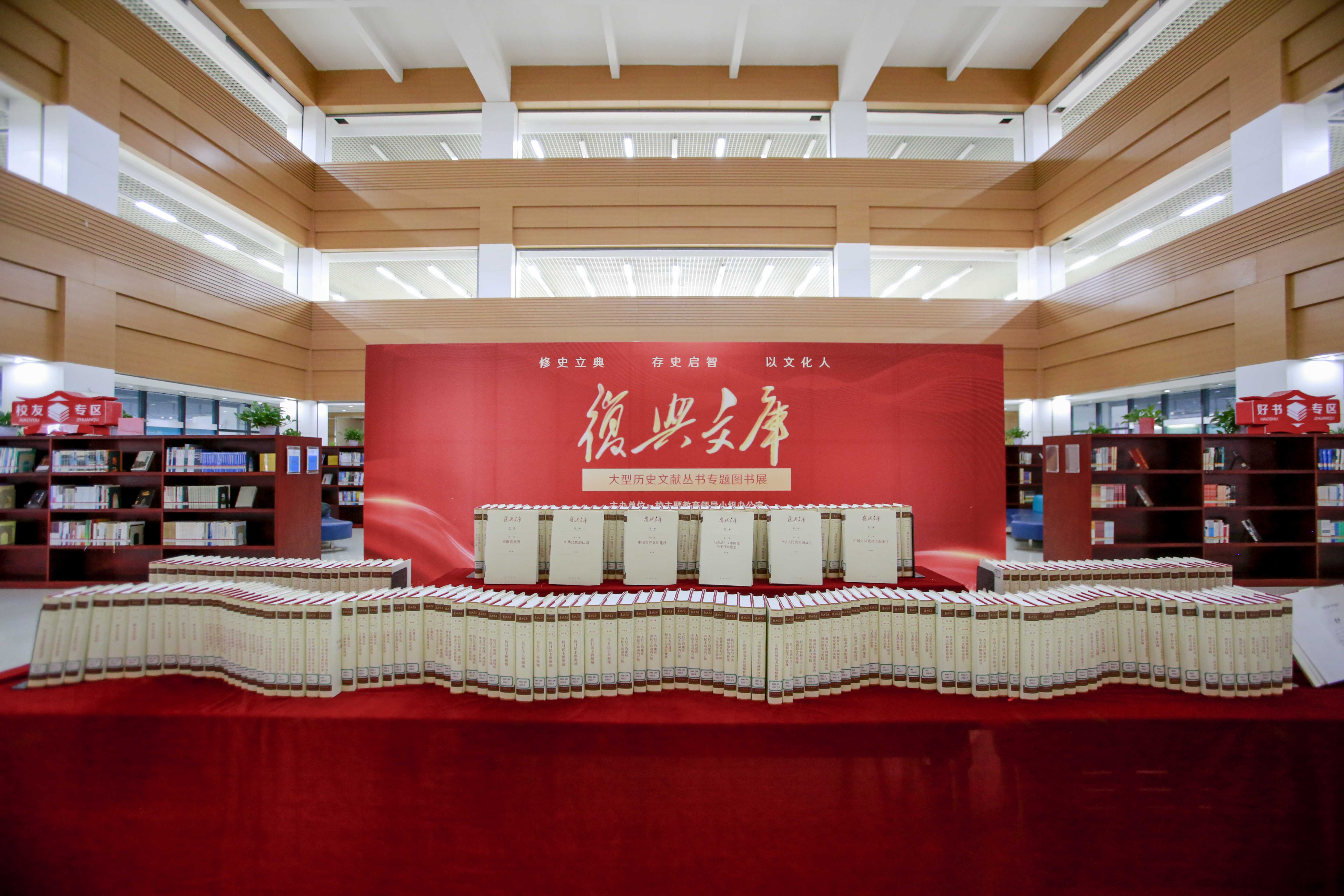 据了解,《复兴文库》是由习近平总书记作序的大型历史文献丛书,编纂《复兴文库》是党中央批准实施的重大文化工程。此次《复兴文库》专题图书展由校主题教育领导小组办公室主办、图书馆承办,展出《复兴文库》系列丛书第一至第三编,共37卷195册,6190万字。