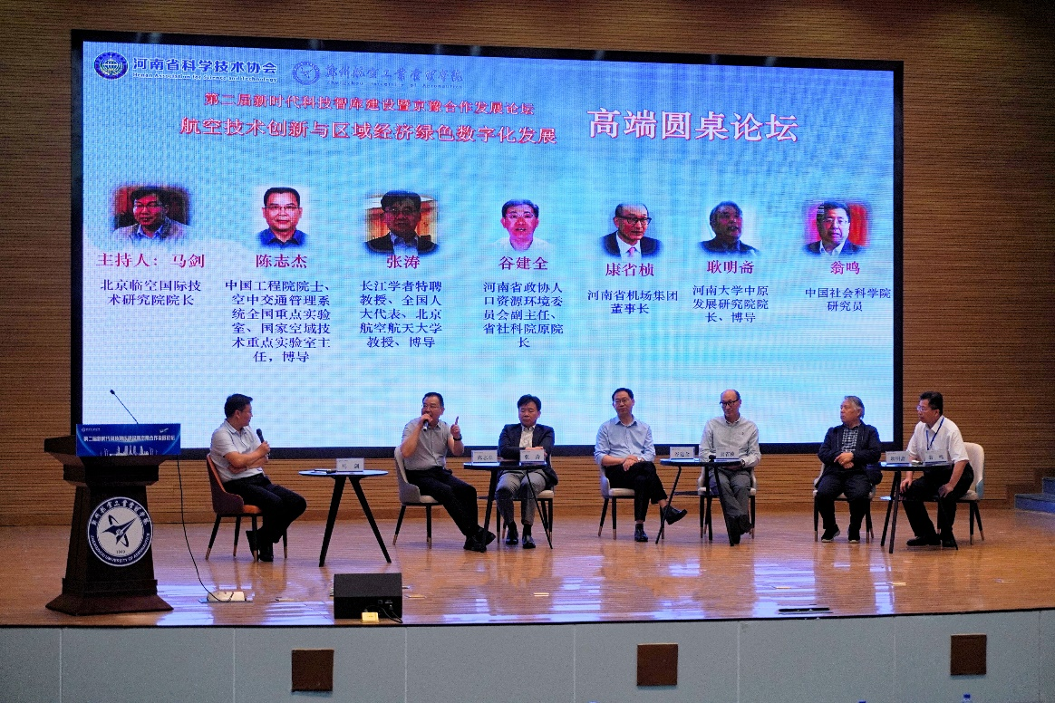 在高端圆桌论坛阶段,陈志杰院士表示,航空器自身低碳发展,降低非直达航线系数,优化空域航线规划等都有利于“双碳”目标的实现;张涛教授表示,材料行业与环境密切相关,复合材料、新材料在航空机场领域的应用有利于低碳与零碳目标的实现;河南省政协人口资源环境委员会副主任谷建全表示航院智库需要把握认识航空经济发展的规律、结合河南省发展的省情、长期跟踪航空经济发展的方向和趋势;河南省机场集团董事长康省桢表示,航空低碳发展需要把握国内与国际、政府与市场、制造与维修间的关系。河南大学中原发展研究院院长耿明斋表示,航空港经济实验区十周年之际,航空港未来需要在航空制造、生物制造、电子信息产业等领域抓住机遇;中国社会科学院研究员翁鸣表示创新型国家建设的关键在于人才,新型智库建设需要汇聚地方多单位力量,从不同视角持续跟踪研究。