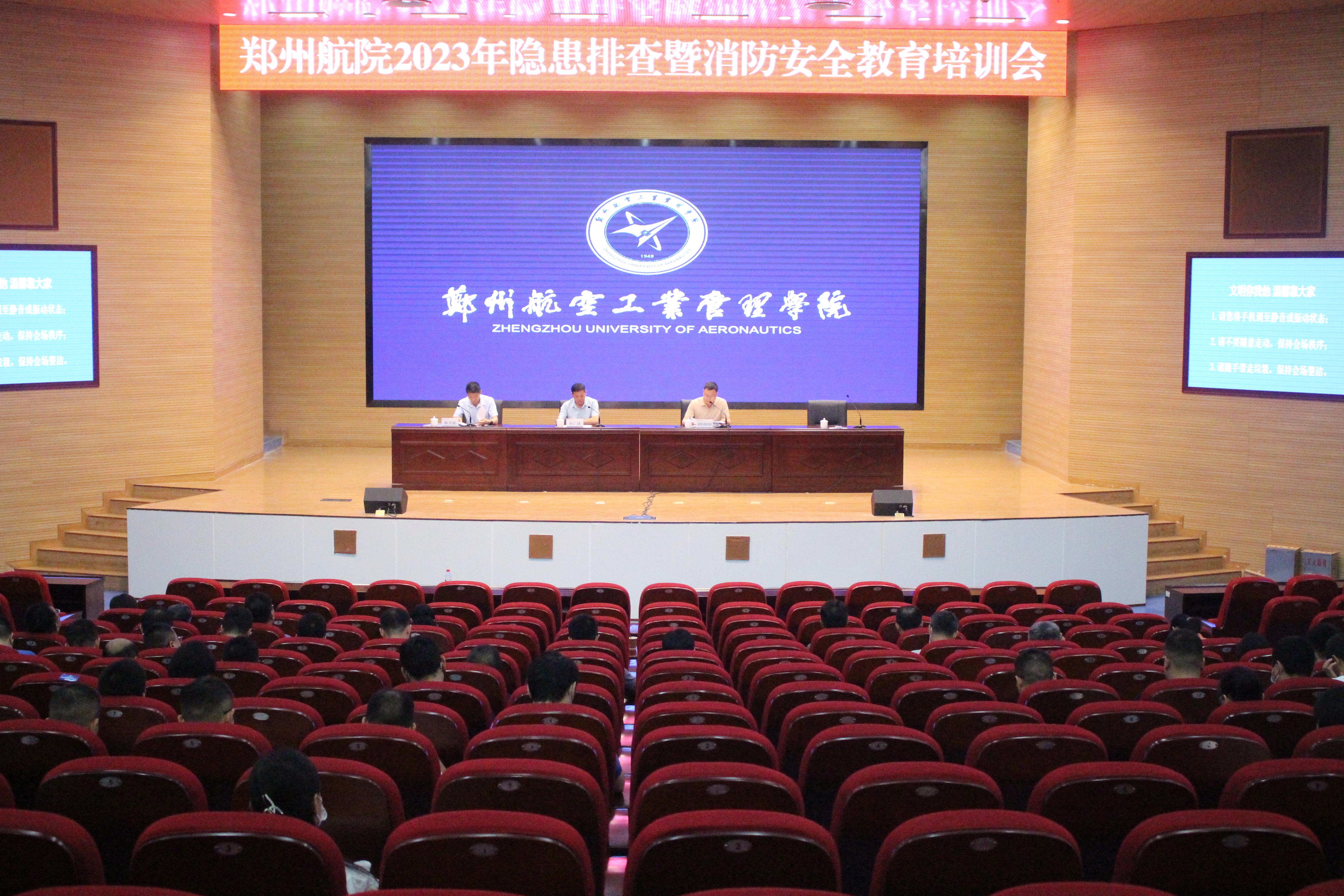 会议宣读《河南省教育系统重大事故隐患专项排查整治2023行动实施方案的通知》《郑州航院隐患排查通知》《安全隐患排查检查工作方案》,通报近期我校安全检查情况及发现的问题,对“安全隐患大排查活动”进行动员部署。
