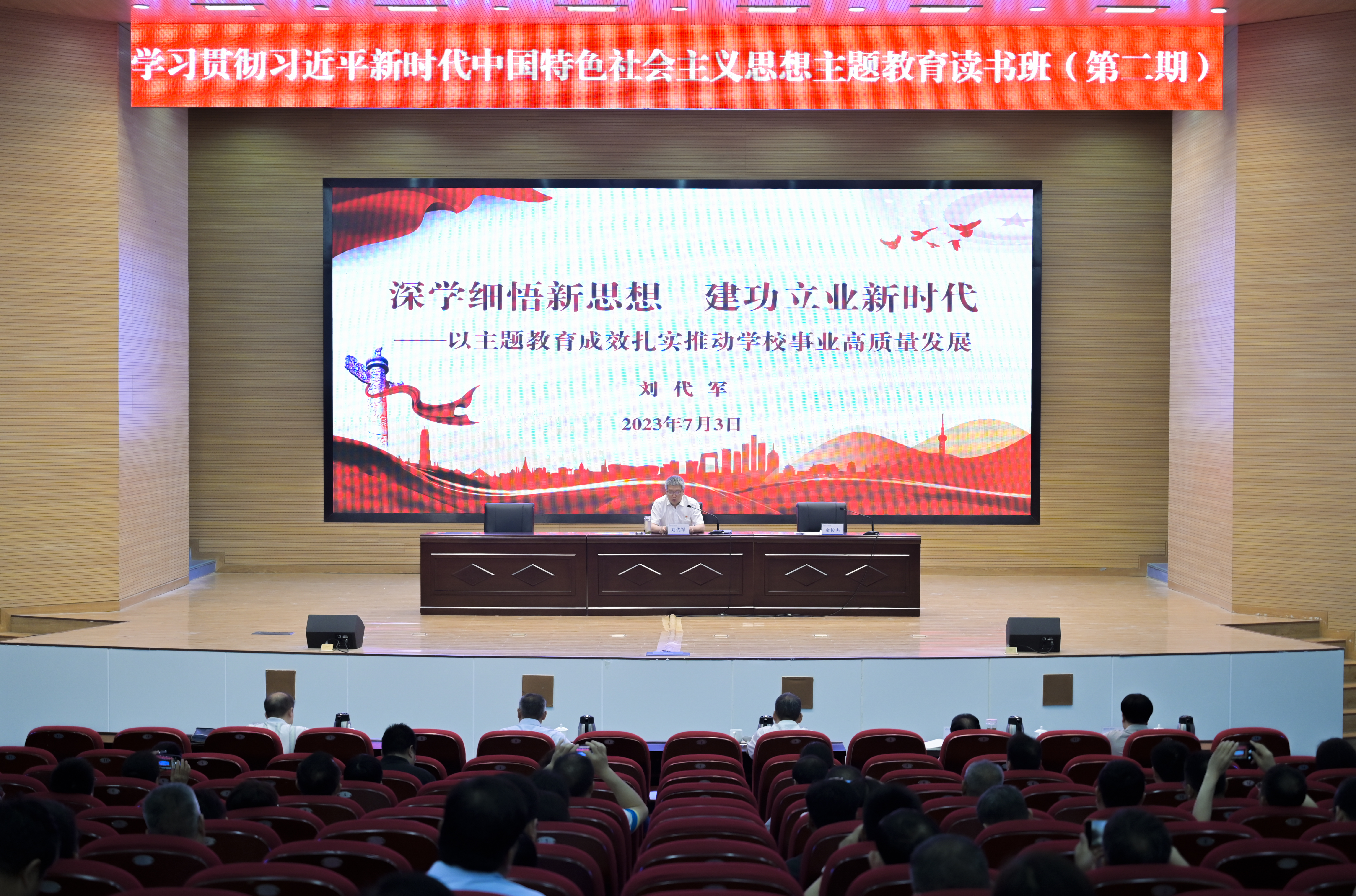 7月3日,校长刘代军在开班式上作题为《深学细悟新思想,建功立业新时代——以主题教育成效扎实推动学校事业高质量发展》的专题党课,系统阐述开展主题教育的重大意义和目标要求,深入剖析制约学校高质量发展短板弱项,希望广大党员干部以更高标准、更严要求、更实措施,作示范、立标杆、带好头,奋力推动学校事业高质量发展。