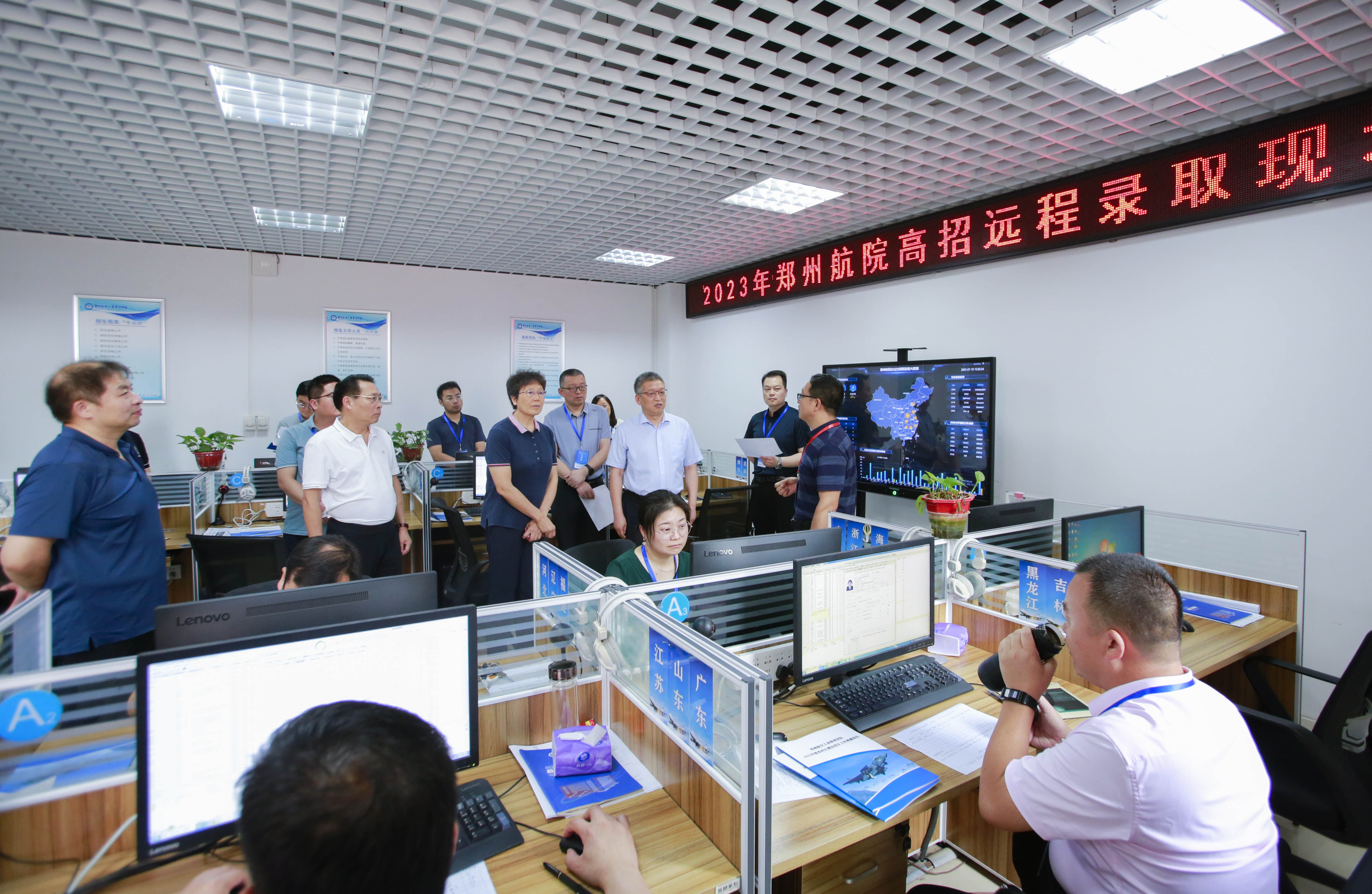 7月19日,河南省高招录取本科一批次投档首日,校长刘代军,校纪委书记、监察专员张文强,副校长王继东、李捷到招生录取现场,检查指导高招录取工作。