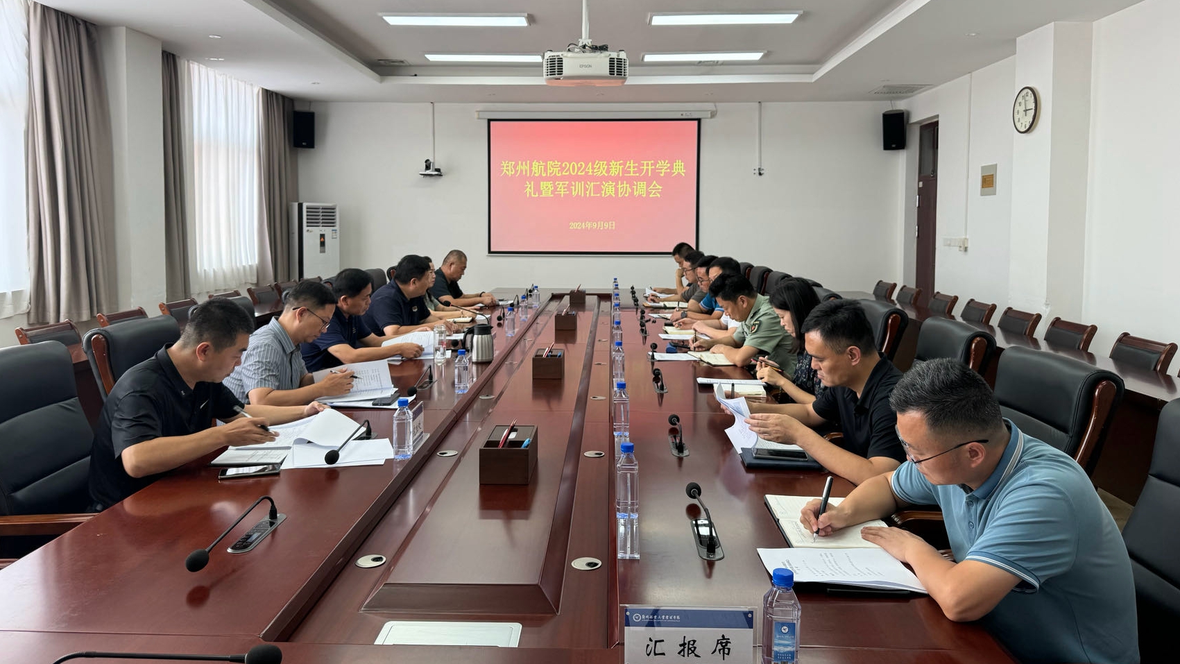 我校召开开学典礼暨军训汇演工作协调会 时间:2024年09月09日 作者:校长办公室 范娟 文图 编辑:新闻中心 邓彦雯 点击: 9月9日,我校召开2024年开学典礼暨军训汇演工作协调会,副校长李广锋出席会议并讲话。 李广锋在讲话中指出,开学典礼暨军训汇演是学校的一项全局性工作,是展示学校管理水平、治理能力和办学实力的重要窗口。相关部门要协同联动、密切配合、主动担当,以高度的责任感和使命感,高标准、高水平、高质量筹备开学典礼和军训汇演,深入细致地做好宣传和服务保障,确保各项工作平稳、有序开展。 会上,校长办公室解读了开学典礼暨军训汇演工作安排,明确相关部门的责任分工。相关部门汇报了工作准备情况,就关键性问题进行研讨,并提出意见和建议。 校长办公室、党委宣传部、学生处、研究生处、人民武装部、校团委、人事处、后勤管理处、保卫处、校友联络发展处、产业管理处、信息管理中心、体育部等相关部门负责人参加会议。 2024年09月09日 校内新闻 上一条:校领导调研指导体育育人工作 下一条:国家档案局司长王燕民一行调研指导我校档案学科专业及国家档案局重点实验室建设工作 【关闭】
