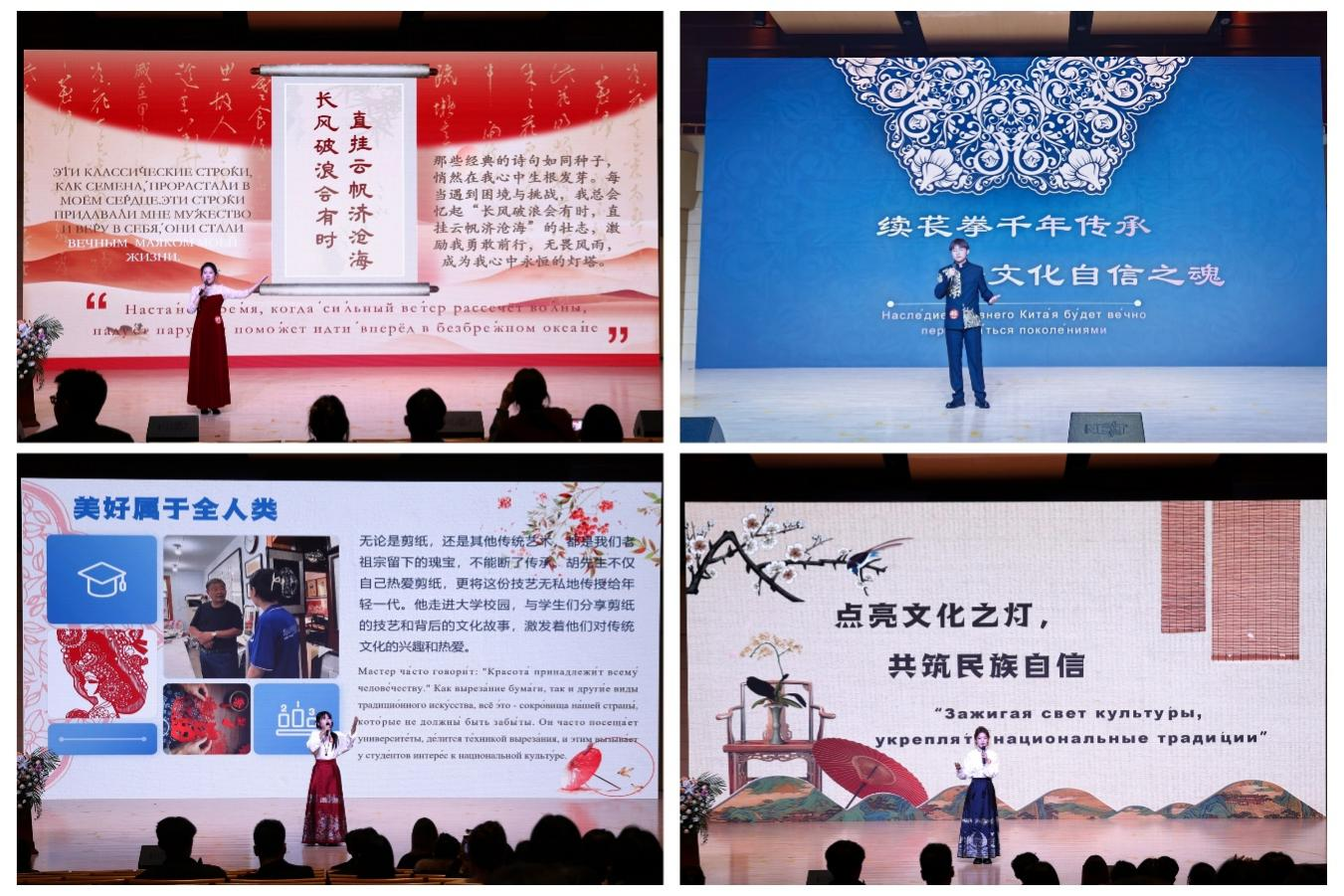 比赛中,我校选手围绕演讲主题,结合自身学习经历与生活体验,用流利的俄语讲述中华传统文化,生动展示了中华文化的独特魅力和深厚底蕴,表达出对中华文明的尊崇和热爱。现场评委和观众对我校参赛选手的表现给予了高度评价。