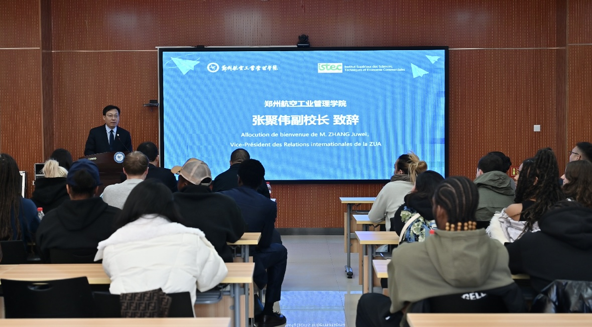 张聚伟表示,今年是中法建交六十周年,也是中法关系历史上一个具有里程碑意义的年份,此次中法青年短期文化交流营正是深化双方友谊、促进民心相通的重要方式。他希望参加本次交流活动的青年交流思想、相互理解,携手点亮知识和友谊的火炬,开启美好的中法友谊之旅,并鼓励参加活动的法国青年感受河南厚重的历史文化和改革发展成就,回国后向更多法国朋友分享在郑航的校园生活和在河南的经历体验,讲讲河南故事,讲讲中国故事,为增进中法青年之间的理解和友谊做贡献。
