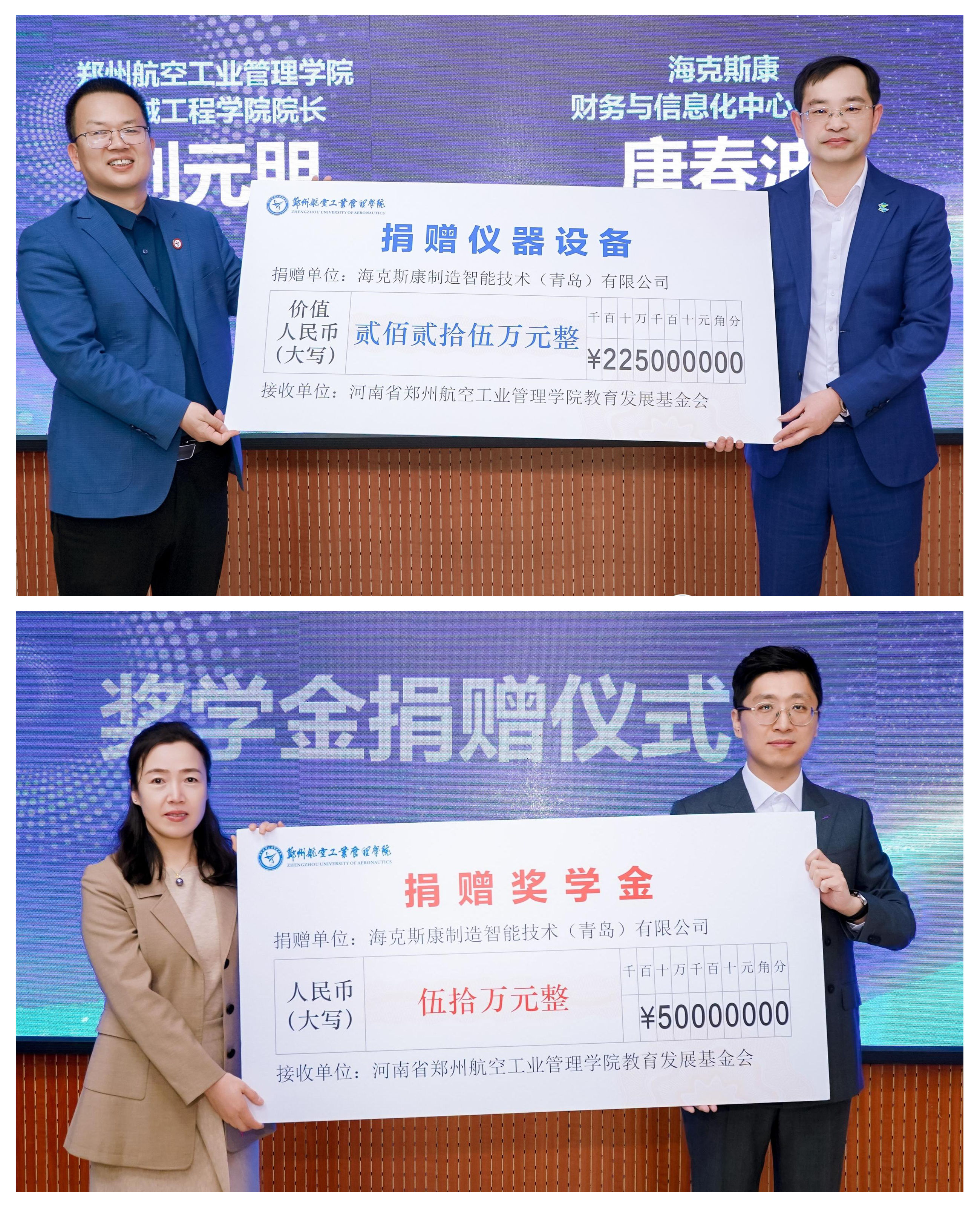 唐春波代表公司向机械工程学院捐赠价值225万元的仪器设备,为“海克斯康数字化质量实验室”揭牌。孙东辰向学生处捐赠50万元奖学金。