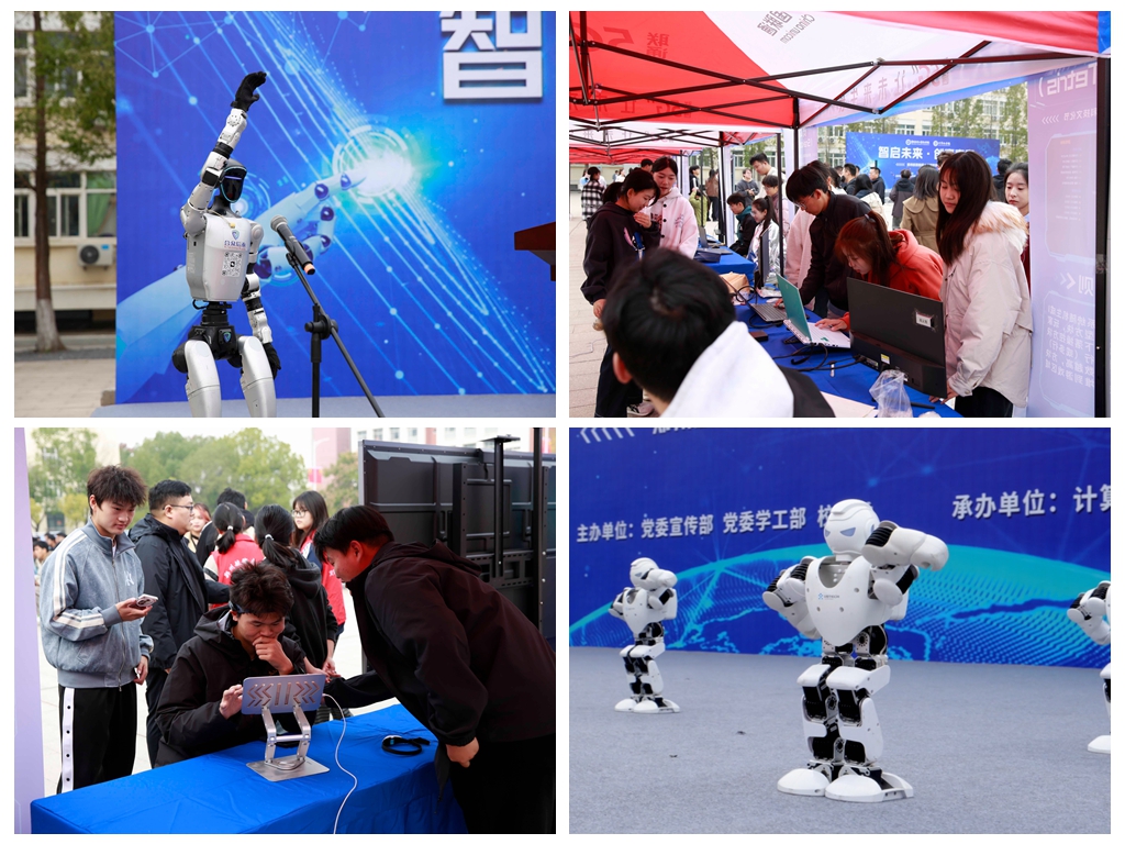 “机器人随着动感音乐翩然起舞,动作整齐划一;智能机器人化身主持人,与师生流畅互动、妙语连珠……”10月24日,这一幕充满未来感的场景并非出现在科幻电影中,而是在我校首届人工智能科技文化节的开幕式现场。一场以“智启未来 创享青春”为主题的AI科技盛宴,在全校师生的期待中正式拉开帷幕。